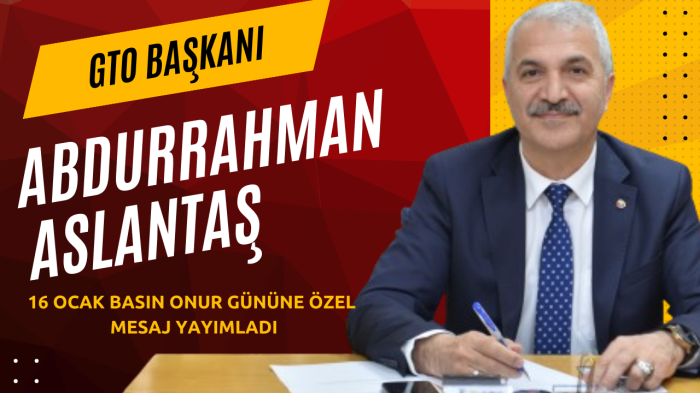 Gebze Ticaret Odası Başkanı Abdurrahman Aslantaş, 16 Ocak Basın Onur Günü dolayısıyla bir mesaj yayımladı.