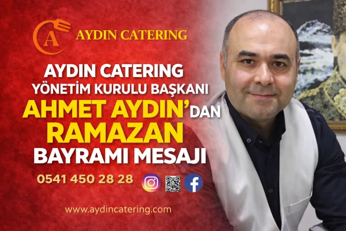 Aydın Catering Yönetim Kurulu Başkanı Ahmet Aydın, mesajının sonunda tüm vatandaşların Ramazan Bayramı’nı kutlayarak, bayramın sağlık, huzur ve mutluluk getirmesi temennisinde bulundu.