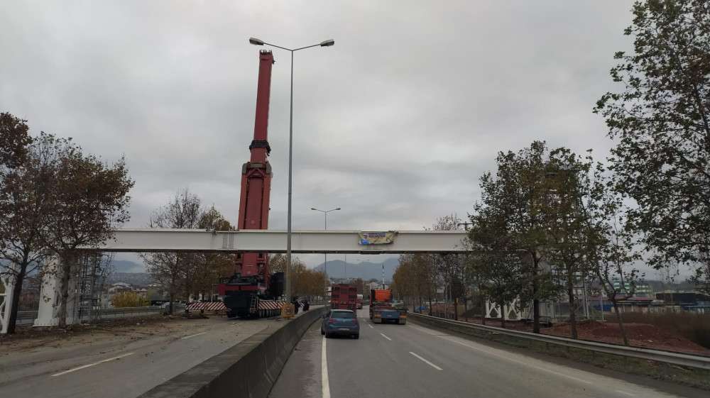 Kocaeli Büyükşehir Belediyesi tarafından Yeni Emniyet Müdürlüğü önüne yapılan yaya üstgeçidine proje kapsamında 44 metrelik çelik tabliye konuldu