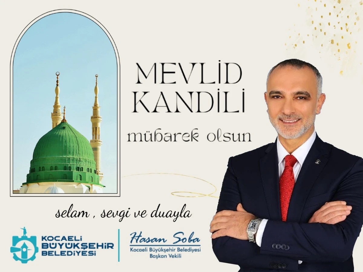 Kocaeli Büyükşehir Belediyesi Başkan Vekili Hasan Soba, Mevlid Kandili dolayısıyla yayımladığı mesajında Müslüman aleminin birlik, barış ve kardeşlik içinde olmasını temenni ederek, savaşların son bulduğu, Filistin başta olmak üzere tüm dünyada huzurun hâkim olduğu bir gelecek diledi.