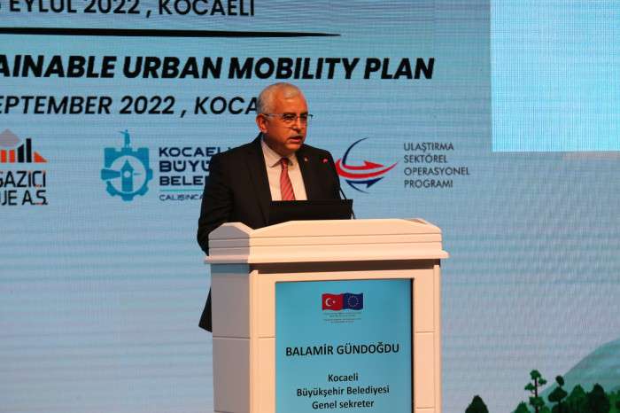 Programda konuşan Genel Sekreter Gündoğdu, “Her gün, gündoğumu ile birlikte şehirde bir yaşam başlar. Kendi özel araçlarıyla seyahat edenler olur, bazılarımız yürümeyi sever, bazılarımız da bisiklete binmeyi sever. İşte kentte yaşayan insanların günlük olarak gerçekleştirdiği tüm bu hareketliliğe, kentsel hareketlilik diyoruz. Günümüz dünyasında artan nüfus, iklim değişiklikleri, çevre kirliliğinin her geçen gün artması, kaynak yetersizliği, kent planlarını düzensiz göçler karşısındaki yetersiz kalması sera etkisi yapan gaz salınımlarının artması gibi sorunlar yaşanmasına neden olmuştur. Günümüzde kentlerdeki hava kirliliğinin ana sorumlusu ulaştırma sektörü olmuştur. Kocaeli Büyükşehir Belediye olarak 2014 yılında Kocaeli Ulaşım Ana Planının onaylanması gerçekleşti. Ulaşım planlarının her zaman her daim güncellenmesi gerekiyor. Avrupa Birliği tarafından erişilebilir ve kapsayıcı Ulaştırma eylem planı çerçevesinde bir Avrupa Birliği projesi yayınlandı ve biz bu projeye Kocaeli Sürdürülebilir kentsel ulaşım planı isimli projemizle katıldık. Projemiz desteklenmeye hak kazandı. Mart ayında ekip arkadaşlarımızın da yoğun, titiz çalışmalarıyla başlayan bu hazırlık ve ihale süreci bu senenin ağustos ayında tamamlandı. Projemizin sözleşme süresi 24 ay olacak. 2024 yılının temmuz ayında projenin tamamlanmasını hedefliyoruz. Kocaeli Büyükşehir Belediyesi olarak sürdürülebilir kentsel ulaşım ana planına katılma amacımız artan nüfus, zorlu topografya, yüksek araç sahipliği ve jeopolitik konumu sebebiyle kentimizde yaşanan dar boğazların çözümüdür. Kocaeli Büyükşehir Belediyesi olarak bu plandan beklentimiz adil erişilebilir entegre ve kapsayıcı bir ulaşım sistemi oluşturmak, otomobil bağımlılığını azaltmak, trafik yoğunluğunu ve hacimlerini daraltmak istiyoruz” açıklamasında bulundu.