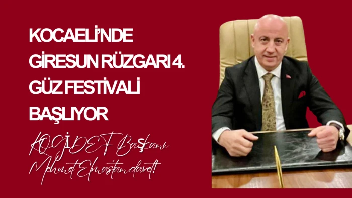 Kocaeli Giresun Dernekler Federasyonu (KOGİDEF) tarafından geleneksel hale getirilen “Kocaeli’nde Giresun Rüzgarı Güz Festivali” bu yıl dördüncü kez düzenleniyor. Festival, 15-19 Ekim 2025 tarihleri arasında Gebze Yan Yol, Ankara Caddesi üzerinde, Eski Feniş Alüminyum Fabrikasının bulunduğu alanda yapılacak.