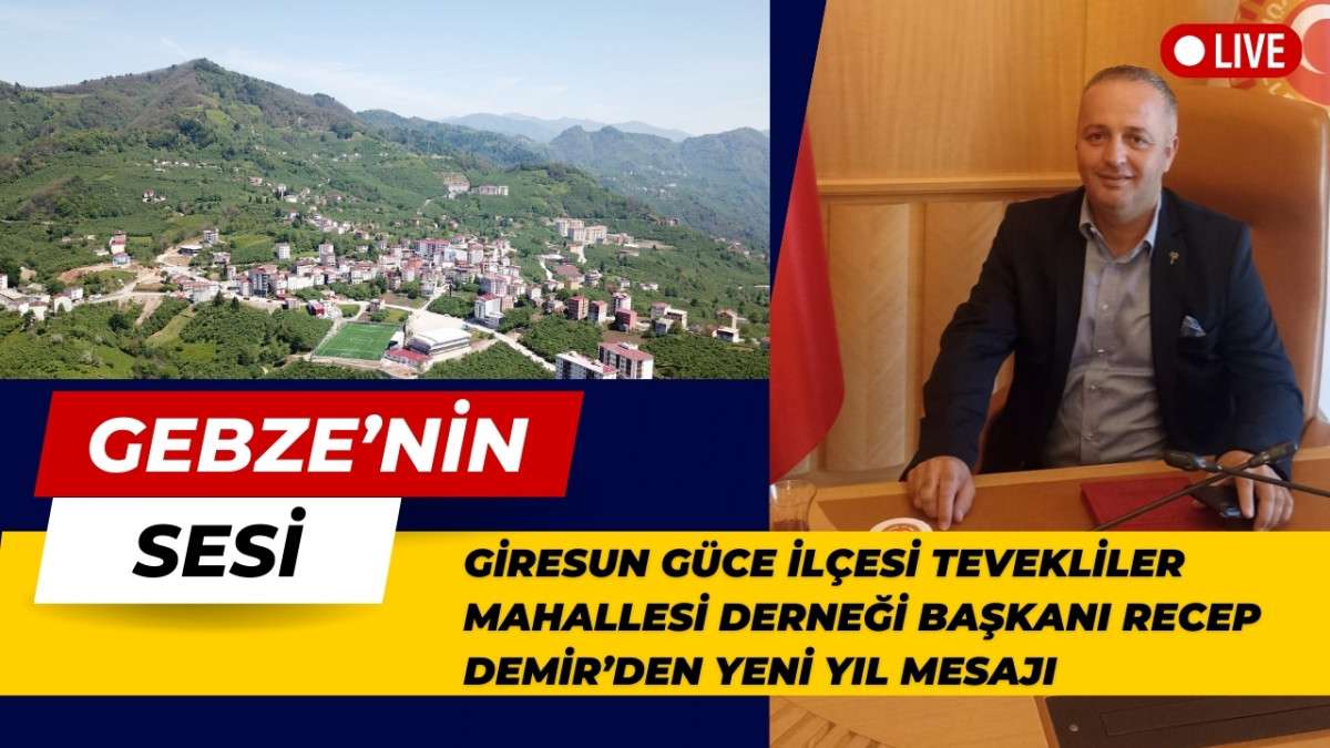 Gebze Giresun Güce İlçesi Tevekliler Mahallesi Derneği Başkanı Recep Demir, 2025 yılına ilişkin yayınladığı mesajında, "2024 yılı, dayanışma ve yardımlaşma ruhunu hep birlikte yaşadık. 2025 yılı da, bu ruhla ilerleyeceğimiz, huzur ve mutluluk dolu bir yıl olsun.
