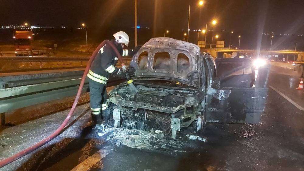 Olayı anlatan sürücü Yusuf Hakan Aydın, “Seyir halinde giderken araba bir anda tutuştu. Sağa çektim, zaten çekişten de düştü araba. İşten çıkmış eve gidiyordum. Sağa çekip kaputu açmaya çalıştım ama açamadım. Araba zaten aldı başını gitti. Polise haber verdik” dedi.