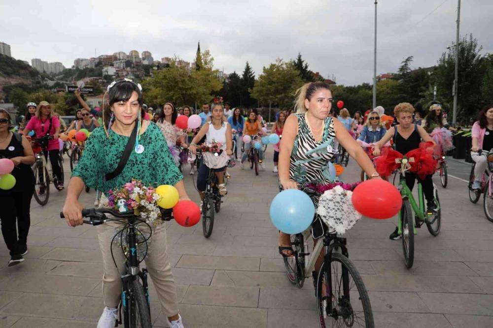 32 ülke ve 200 şehirde eş zamanlı olarak gerçekleştirilen Süslü Kadınlar Bisiklet Turu, İzmit sokaklarında renkli görüntülere sahne oldu.