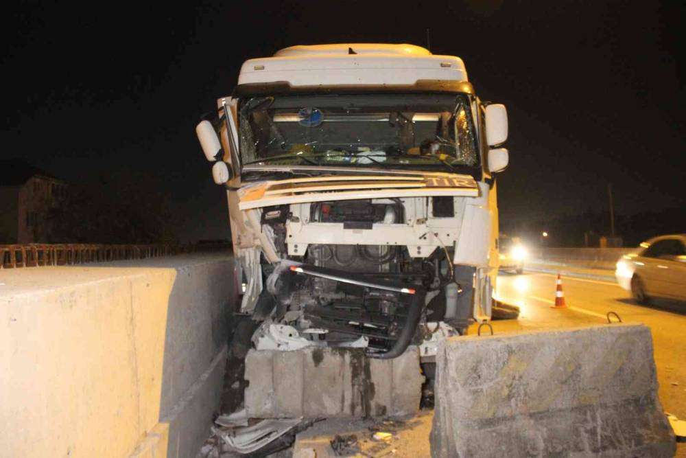 Tır bariyerlere çarparak sürüklendi, kaza ucuz atlatıldı