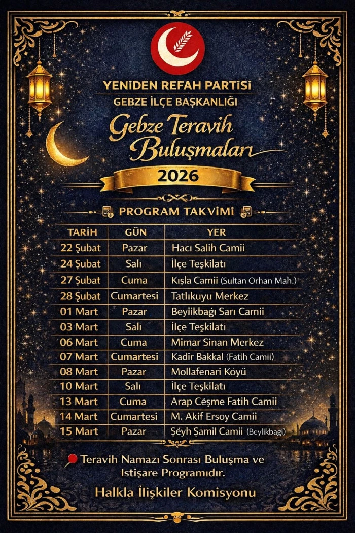 Yeniden Refah Partisi Gebze Teravih Buluşmaları Takvimi